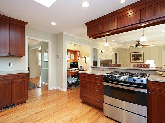 Beautiful all brick home with lovely sweeping front yard conveniently located on quiet cul-de-sac street. Recently renovated kitchen with stainless appliances open to den with fireplace, sun porch, and new deck. Separate formal living room with built ins, dining room, and hardwoods throughout. Full finished terrace level with bedroom, full BA, fireplace, screened porch, and tons of storage. Permanent attic stairs and equipped with fiber optics. Gorgeous landscaping.