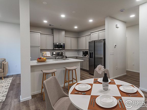 Howes by Hartford Homes. New construction townhome. Interior unit. Central a/c. Two-story. S.s. dishwasher, fridge, microwave, gas range. Chai latte maple cabinetry. Quartz countertops throughout. Vinyl plank flooring in entry, kitchen, dining, baths, laundry and living room. 3 bedrooms and laundry room on second level. Washer & dryer included. Garage door opener. Fenced in courtyard. Community amenities: pool, park, splash pad, trails, pickle ball courts. ASK ABOUT CURRENT LENDER INCENTIVES FOR RATES.