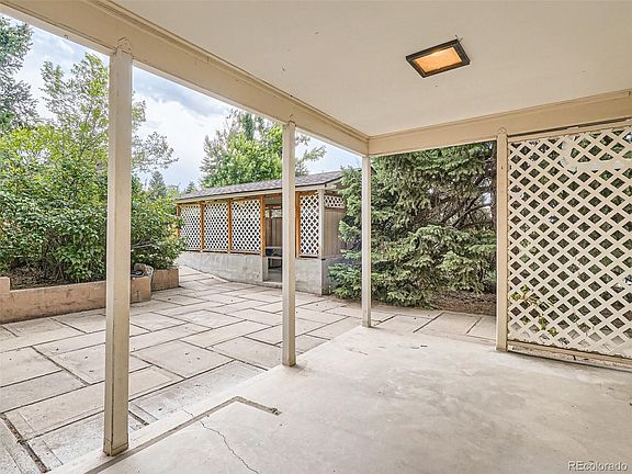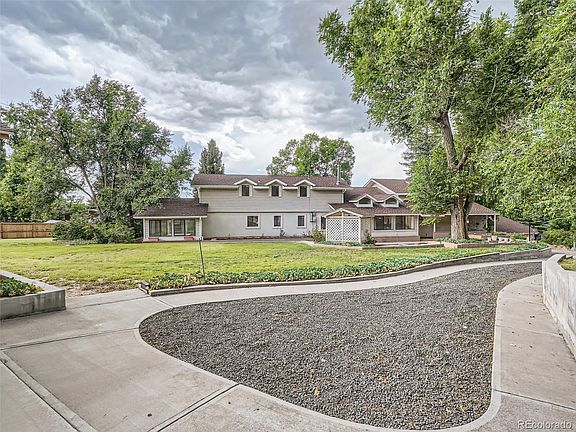 On .8 acres with views of the Rocky Mountains from the front porch, this multilevel 7 bedroom/4 bath home with oversized 2 car garage is an entertainer's dream. Walls of windows let natural light flood the formal living room and beautiful flagstone fireplace, a large formal dining room perfect for family dinners, and a generous sized eat-in kitchen with room for two cooks! A spacious laundry room leads to an outdoor grilling space and dining area complete with covered cabana perfect for four seasons use. A huge back yard surrounds a cozy gazebo at the edge of a large courtyard and raised garden beds. The oversized driveway is perfect for RVs and a parking area in the back with a garden shed with electricity is large enough for a riding mower and garden tools. A covered patio leads into the bright sunroom perfect for family time together. Above the garage are 3 spacious bedrooms and bath. A huge hobby room resides on the upper level. An impressive library with built-in bookshelves is made for quiet conversations and study. The beautiful primary suite with 5 piece bath, and incredible walk-in closet, has an intimate oasis complete with jacuzzi and sitting area and access to a private patio. In the upper level is a separate primary bedroom and bath and generous guest bedroom. A huge attic has tons of storage space, and a secret room protects valuables. A separate office area offers a beautiful view of Mt. Evans, and has its own balcony that feels like being in a treehouse. In addition to a guest bedroom, the lower level is the perfect party space, with a family room, wood burning stove, a bar, and room for a pool table! Directly across the street is Belleview Park with tennis courts, ball park, petting zoo, train and swimming pool, perfect for family fun. The house is within walking distance to schools. With no other properties that can compare to the size and amenities that this home offers in this excellent location, it won't last long. Don't miss out!