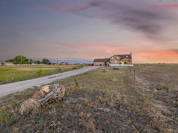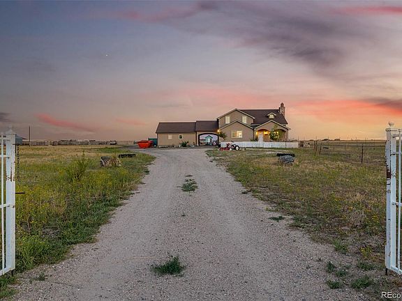 Look no further! This fantastic 4 bed, 3.5 bath residence in Bennett is the one for you! Nestled on a HUGE 35.9 acre lot perfect for raising cattle, farming, or horse keeping, it already comes equipped w/a corral, several stalls, and storage sheds! The home itself boasts carport parking and a welcoming front porch where you can sit back and enjoy your morning coffee. Discover a sizeable living area w/soaring ceilings, laminate flooring, elegant light fixtures, and a wood-burning fireplace. The eat-in kitchen is comprised of wood cabinetry w/granite tile counters, a pantry, and all the built-in appliances needed for preparing your favorite meals. HUGE primary bedroom has it's own private ensuite and large walk in closet. Upstairs you'll find 2 sizeable bedrooms, each boasting vaulted ceilings, a walk-in closet, and a private ensuite for the comfort of you and your loved ones! Stylish French doors open up to a cozy den w/balcony access, ideal for an office or reading nook that over look amazing sunset views. Large basement bonus room showcases a 2nd fireplace, as well as an attached kitchenette! Also including a quaint backyard patio w/fantastic sunset views, this home is simply a dream come true! Don't wait any longer, act now!