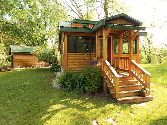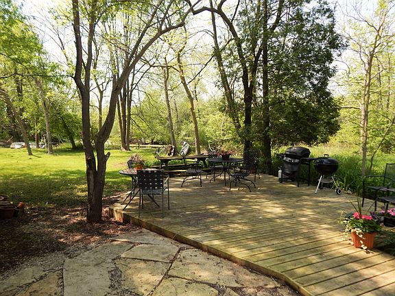 4 season turnkey 1 bedroom well designed open concept cape cod that can sleep up to 8. Enjoy fabulous views of skiable Friess Lake from your front windows or pier on private 10 feet lake frontage. River frontage adjacent to park like backyard speaks tranquility. 2 kayaks included so you can paddle down river to fishable no wake Little Friess. 2 car. Main level laundry. Newer: windows, furnace, metal roof, water heater & softener, deck, well pump & more. Appliances & most of furnishing in & outside included.