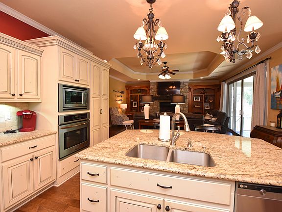 Enjoy the cove waterfront view from the great covered patio of your French Country home. Included boat slip is in the dock behind your home. Very tastefully decorated throughout. Bonus room over garage can be used for media room, bedroom, or whatever you desire.