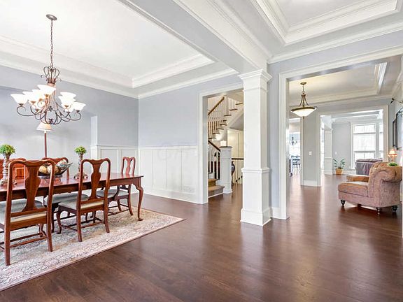Beautiful executive custom home with high end finishes. Large open spaces and gleaming hardwood flooring. First floor den with built ins and formal Dining Room. Family Room with coffered ceiling and fireplace opens to huge kitchen with gourmet appliances, center island, walk in pantry and large eat in space. Mud room with built ins, extra storage closet and small home office. Open floor plan makes this an entertainers dream or a great house to host the family get togethers. All 6 bedrooms are suites with walk in closet and full bath. Upstairs media room, Master features sitting room with see through fireplace and coffee bar. Finished basement with bar. Phenomenal Backyard oasis with built in oversized pool, landscaping and fenced yard. Cul-de-sac, private lot backing to woods.