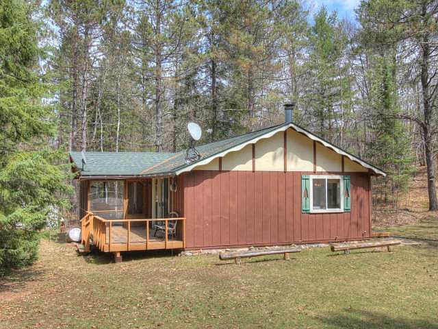 HEART LAKE CABIN - You're going to fall in love with this 1.6 acre property on Heart Lake! First, there's a year around cabin with two bedrooms, one bath, and open living / kitchen / dining area. Patio doors in the living room walk out to a lakeside deck and offer views of the lake. A wood-burning, freestanding fireplace adds to the ambiance and warms the place quickly when the air turns chilly. The master bedroom includes a glass patio door with side light for direct access to a screened porch with open-vaulted ceiling. The updated bathroom is spacious with a fiberglass shower. There's a sturdy boardwalk to the 113' frontage on 65-acre Heart Lake, where a deck area and rippled sand shore await. No public launch, quiet lake, with great fishing! Includes two storage sheds plus a 2-car garage with bonus room above, sheeted and insulated with windows at each end & bunks built-in. Now is the time to secure your future vacation home and begin building family traditions all your own!