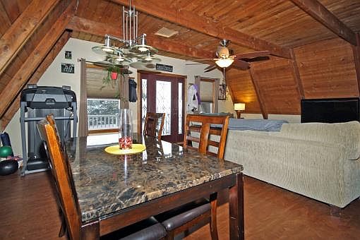 COMPLETELY UPDATED A-Frame home situated on 3/4 of an acre across the road from Wall Lake! The main floor is open & offers a family room w/gas fireplace, dining area, full bath, 2'' cedar tongue & groove on ceilings & new kitchen! The trendy kitchen features everything the savvy buyer is looking for. A center island/snack bar, new stainless steel appliances, granite tile counters, glass tile backsplash. Off the kitchen is a large pantry/storage room. The upstairs has 2 very large bedrooms each w/sliders to a private balcony! The basement is completely finished w/2 possible bedrooms, theatre/family room, plumbed for wet bar, modern full bath, laundry room & more storage. A detached 1 car garage is heated & has ample room for a workshop or more storage. Call today to see this home!