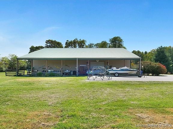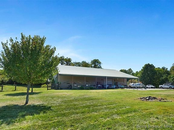 Gorgeous 16 acre horse farm in Georgetown IN. This is a true Barndominum! This barn blends the rustic horse life with modern amenities and more. As you enter the barn there is a large entertaining area the is climate controlled to store classic cars, motorcycles or remain a large gathering area. The living quarters is two levels and can be accessed by two stair cases and the loft. The large primary suite is roughly 1500 square feet and is situated to the left and separated by the loft to the main living area . On the right side of the loft is the main living quarters. Consisting of an open concept kitchen and living room on the second floor. The first floor has 3 bedrooms and 1 full bathroom. There are 5 horse stalls and a tack room. There is another room in drywall that was going to be a theater room that needs to be completed. Finished living space is around 4300 square feet. Tons of storage in the barn and a huge 25x64 foot covered porch/carport. The property is in Floyd and Harrison County. 3 parcels total. The driveway is one of the parcels and not an easement. This is a great opportunity that is less than 30 mins from Louisville. This home comes with Americas Preferred Home Warranty.