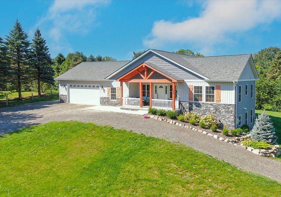 THE OPEN HOUSE HAS BEEN CANCELLED. SORRY FOR ANY INCONVENIENCE. Nearly new - built in 2019. This ranch is nestled on 2 gorgeous acres & has a modern farmhouse vibe. The location is optimal and the home is picture perfect. One of your favorite features will be the wood post and beam covered front porch. This is the perfect place to take in the scenery and unwind with a cup of coffee or glass of wine. The floorplan flows beautifully & features spacious rooms w/ luxury plank flooring throughout, custom doorway trim, recessed lighting & premium light fixtures. This kitchen takes the cake w/ it's endless features and upgraded options such as SS appliances, large island, soft cabinets with cutting board and lazy Susan, built - in buffet, and walk - in pantry and is the perfect place to host the holidays. The primary suite is top notch with barn doors leading to a bathroom with a custom wood vanity & huge tiled walk-in shower. His and her closet conveniently leads to the laundry room. A patio is located off of the primary bedroom & would be a great place to take in the stars. The backyard also has a 2 tier retaining wall that is waiting for your landscaping creativity. Double your living space in the walk-out lower level. It's optimal due to all of the daylight windows and is already prepped for a bathroom. Fenced yard & an invisible fence. The land features mature pine trees, wide open spaces, a mini orchard, raised box gardens and a 2-story barn. The attached 2 1/2 car garage has a built-in workbench & multiple windows for natural light. Do you have a boat, trailer or RV? This listing will accommodate your needs with plenty of options for outdoor storage. It doesn't get much better than this.