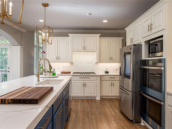 Better Than New! This beautiful 4 sides brick home is on one of the largest lots in Wellington Lake neighborhood and located near schools, shopping & dining in the Peachtree Corners Forum. The seller has completed all of the renovations for you including Kitchen w/enlarged island, new Quartz Countertops & Backsplash, new appliances including a Viking Cooktop, freshly painted cabinets. Kitchen overlooks cozy keeping room with vaulted ceiling and stacked stone fireplace. The bright and sunny 2 story great room has brand new palladium windows, a welcoming guest room on main, home office and elegant formal dining room. The master suite boasts the 3rd fireplace in the sitting area, spa like master bath and enormous closet/dressing room. All secondary bedrooms are gracious in size; 2 share a jack and jill bath and 4th bedroom has a private ensuite. The terrace level is a stunner with brand new high end Southwind LVP flooring and ready for entertaining w/a custom bar, wine cellar, home theatre, game room, dining area, gym and 2 additional bedrooms & 2nd laundry room. This home has been freshly painted inside and out, refinished hardwood floors, new lighting throughout home, new carpeting, fresh landscaping and roof is only 4 years old!