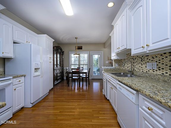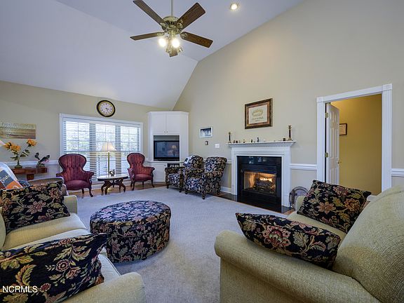 Nestled in the sought-after Lake Clermont subdivision of New Bern is this charming brick home offering a delightful lakeside living experience. This property stands out with its exclusive boat ramp, providing convenient access to the tranquil waters. The interior of the home is both elegant and functional while a celebration of light and space. Find tall ceilings throughout the first floor living space allowing a bounty of natural light to flow seamlessly throughout the home. The formal dining room features dental crown molding, adding a touch of sophistication to your dining experience. Entertaining is effortless in the cozy living room, complete with a gas fireplace that adds warmth and ambiance. The heart of the home, the kitchen, is a culinary dream with its granite countertops, stylish tile backsplash, and a charming breakfast nook that overlooks the tranquil lake, offering a picturesque start to your day. The allure extends outdoors to a screened-in back porch, an idyllic spot for relaxing while gazing over the lake. The property's lake frontage is beautifully bulkheaded, and the convenience of a private boat launch adds to the home's appeal. The first-floor primary bedroom is a true retreat with a double tray ceiling, picturesque lake views and an ensuite with a jetted tub, perfect for unwinding after a long day. Designed with versatility in mind, the home includes a flexible upstairs bonus room, plumbed for a future bathroom and perfect for a home office, theater room, or your personalized craft space. Practicality meets luxury in the laundry room, which includes a sink and cabinets for added convenience. Additionally, the home boasts a practical 2-car garage and a widened driveway providing ample parking space and easy maneuverability. Its convenient location is just minutes away from the airport, vibrant Downtown New Bern, and MCAS Cherry Point, making it an ideal blend of tranquility and accessibility. Contact us today for your private tour!
