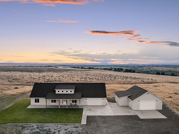 MLS# 269462 Amazing views of the valley, Mt. Rainier and Mt. Adams surround this 2019 built 2626 sq ft 3 bed, 3 bath rambler with bonus room with attached oversized two car garage and detached shop! From the moment you drive up you will be captivated by the serene setting starting with both front and back patios perfect for enjoying sunrises and sunsets! Step in and you will love the tile entry and large office which has been framed for French doors if you prefer more privacy, continue to the large open living room with views from every window and an abundance of natural light which flows seamlessly into the large kitchen with quartz counter tops, full tile backsplash, separate beverage fridge, tons of storage, walk in pantry that extends under the staircase. The dining room is sized for gatherings and easily extends to the back patio. The secondary bedrooms are large and the main bedroom is oversized with en suite bath to include heated floors, tiled shower and shelving in the walk in closet. Upstairs you find a 464 sq ft bonus room with mini split with thermostat and plumbing available in floor if you wanted to add a 4th bath! The laundry room provides much storage, 1/2 bath and utility sink! Step outside and you will find a 1440 sq ft shop with loft storage, framed for an office and plumbed for additional bath. Both 30 & 50 AMP as well as RV dump on site. Additional 10X20 storage shed, large chicken coop and raised garden beds also included. Yard has 4 station underground sprinkler system. No CCR’s. This property is a move in ready oasis as is or build it out to create your own dream! Tucked away minutes from Prosser and a short drive to Tri City amenities. Plenty of room for additional shop, possible ADU (per county allowance), pool, etc. Call for your private showing today!