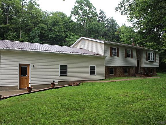 Looking for privacy? This 3-4 bedroom 2 bath home sits on over 3 acres. The living room has an open staircase,decorative plaster and a newer bay window. The dining room has walkout to the rear private deck. Entertain in the finished lower level family room. The owners recently built an awesome attached 27 x 36 garage in 2014. Must see. Call for your personal tour today!