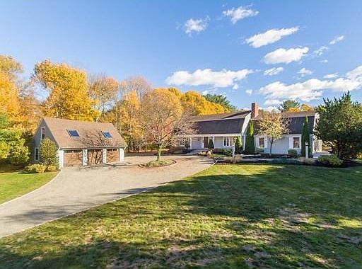 YOUR DREAM HOUSE IS ON THE MARKET!!! Your own mini estate with separate 3 car garage and additional space above the garage for work room, office etc. The main house has it all with large rooms, flexible floor plan,open concept and loads of sun light that streams throughout. Beautiful custom kitchen with island, upscale appliances and dining area that overlooks water fall, gunite pool and picturesque 2.49 acres. Enjoy your spacious cathedral ceiling family room, with sliders leading to wrap around deck and walls of glass bringing the outdoors in. Formal dining room, additional play room, sunroom with hot tub add to the many extras on the first level. Sunroom has skylights, and a potting sink. Second level has 3 spacious bedrooms including exquisite master bedroom with its own fireplace, custom bar, interior and exterior balcony. Flexible floor plan allows for master on first floor or great space for extended family. Private setting but easy access to town and commuter rail.