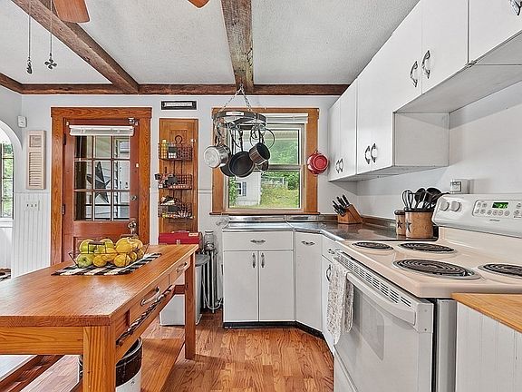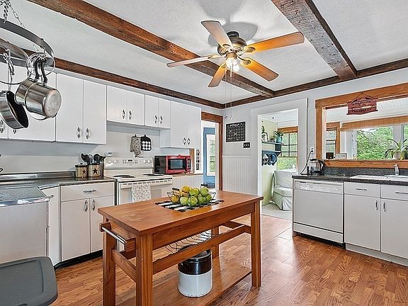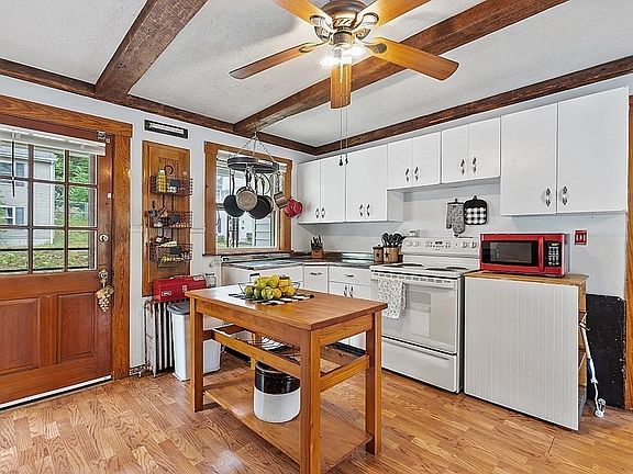 Come see this cute colonial today! This 3 bedroom home is ready for you to move right in. The 1st-floor features a large kitchen with white cabinets and beautiful exposed wood beams. The kitchen flows nicely into the dining area as well as the laundry room. The dining room features beautiful hardwood floors and charming built-ins. The living room has hardwood floors, tons of natural light and built-in shelving. On the 2nd-floor you'll find 3 very large bedrooms with good-sized closets including a bedroom with a walk-in closet/potential office space. The walkout basement provides great space for storage. The home is piped for a wood stove in the basement. Outside you'll find both a front porch and a large deck. The deck overlooks the flat backyard and detached garage. Come see this beautiful home today!!!