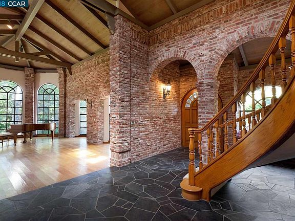 This castle-like brick home is located in the prestigious Orinda Downs area. Surrounded by lush trees and greenery, this property offers a rare connection to the outdoors and features incredible natural light, a sun-filled flat backyard with an expansive lawn, pool, welcoming patio, garden and framed by trees providing seclusion for year-round entertaining.