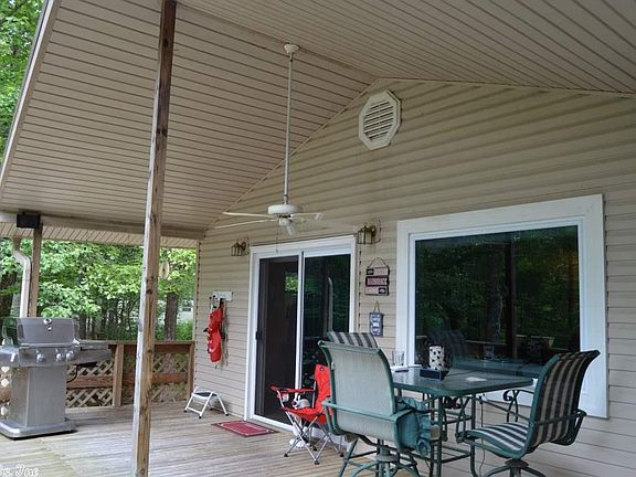 Large covered deck, great for entertaining family and friends. Easy walk to the lake so you can go swimming or climb into your boat and take a spin on the water. Main level of the home offers 2 bdrms, 1 ba, living, dining, kitchen, laundry. Lower level is a walk out basement: den with wet bar, wood burning stove, master bedroom, bath. Very open area. Walk out onto small patio,, carport. Detached garage, and 13X29 storage building. There's 2 lots with this property. Lot 3 is not a lake lot, but lot 4 is