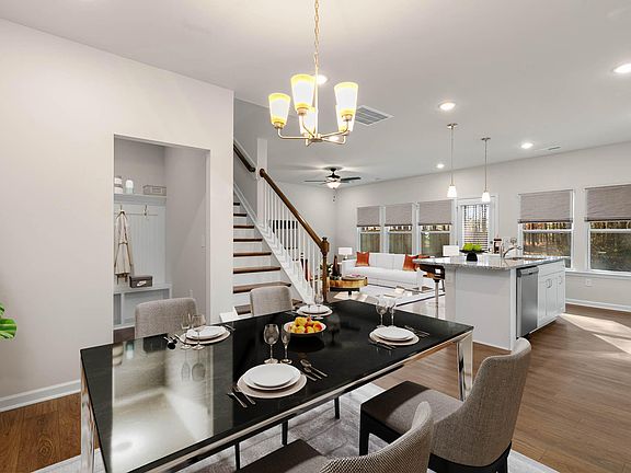 Welcome to the Brunswick floor plan! The English Country design creates the perfect aesthetic for your dream home. Spanning across 1,957 square feet, this spacious residence boasts four bedrooms, 2.5 baths, and a two-car garage. However, what truly sets this home apart is its built-in flexibility. In this beautiful home, you will find New Home Inc's exclusive features that have been incorporated, such as the Pocket Office, Messy Kitchen, wrap around island for multi-side seating, and Smart Door Delivery Center. This customization allows you to tailor the home to your unique preferences and needs. The expansive layout encompasses three large guest rooms, ensuring ample space for family and friends. The centerpiece of the second floor is the oversized owner's suite, designed to provide a sanctuary of relaxation. Equipped with a double sink vanity featuring elegant quartz countertops, this bathroom exudes sophistication. The highlight of the owner's suite is the oversized Walk-In Shower, providing a spa-like experience within the comfort of your home.