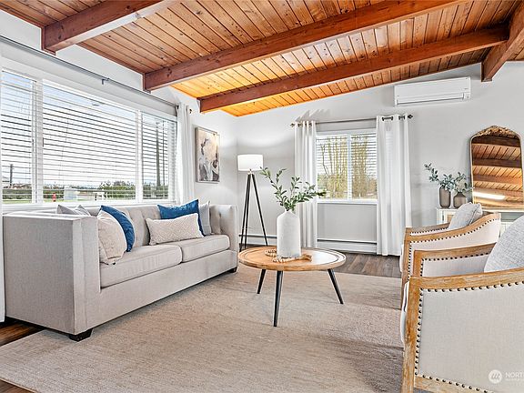 So much more than meets the eye, this beautiful cottage style mid-century home is situated on over 1.5 acres w/huge 4 bay shop & detached garage outbuilding. Spacious rambler w/over 2,400 +/- sq ft has been tastefully updated w/laminate wood flooring, neutral paint, hp split systems, vinyl windows & more. Enjoy entertaining w/room to spread out in huge living room & additional finished family room. Owner's suite has 3/4 ensuite bath & lots of natural light. Fully fenced backyard area, plus tons of parking, & huge additional property behind shop to utilize. 4 bay shop w/RV bays for all of your toys, plus the detached garage w/workspace. Great central location just minutes to Lynden or Bellingham!