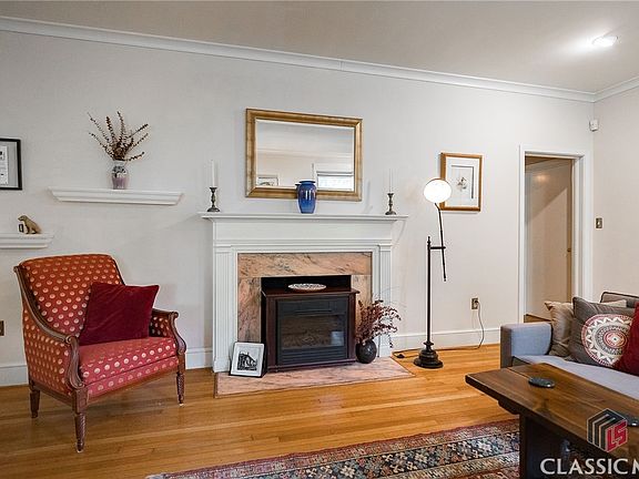 The living room features a marble surround wood-burning fireplace, creating a warm and inviting atmosphere on chilly Georgia evenings. This is a graciously sized living area where you create lasting memories with family and friends.