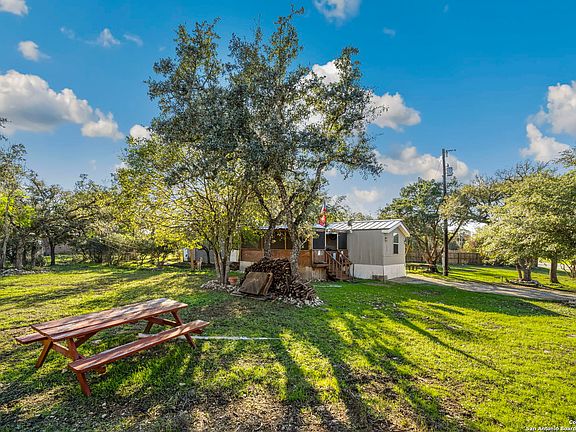 Experience the epitome of Hill Country living in this stylish 3-bedroom, 2-bathroom residence located in Spring Branch, TX. This home boasts an inviting open-concept layout, ideal for hosting gatherings and socializing. The kitchen is a standout feature, complete with an oversized island offering both seating and ample storage, making it the perfect hub for entertainment. Stainless steel appliances add a modern touch to the culinary space. Among the property's many attractions are split-style bedrooms, a generously-sized screened-in front deck, and an additional deck accessible from the kitchen. There's also a substantial storage shed with a well-maintained paved driveway, and a relatively new roof, just five years old. Situated on a spacious 3/4-acre lot adorned with mature trees and boasting minimal restrictions, this property offers endless possibilities. Whether you dream of adding an extra dwelling, creating space for RV or boat parking, installing a pool, or pursuing other ventures, this expansive property is primed for your vision.