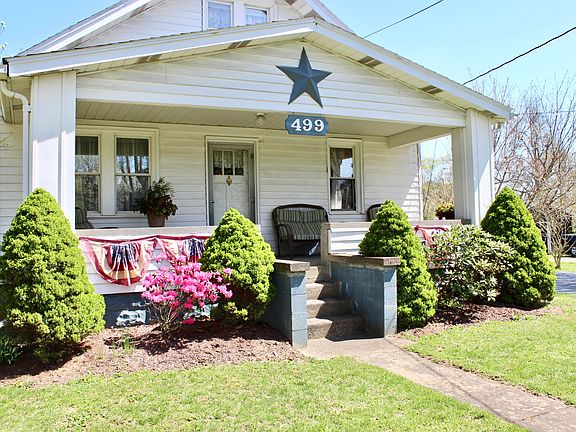 GOLF COURSE VIEWS! Enjoy the peaceful setting of the spacious 1.75 acre lot with new carport, storage sheds, detached garage, charming gazebo & perennials planted for the seasons. Home features a lovely covered front porch, freshly painted interior, fully equipped kitchen, main floor bedroom & full bath with new flooring & vanity. The dining room is accented by original french doors and large windows. Full Basement with additional shower. MOVE IN READY!
