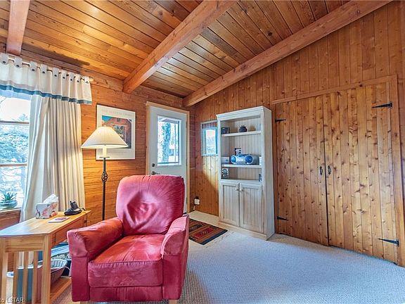 A wonderful cottage set within the city! This unique tongue and groove log home built with Eastern White Cedar is nestled among soaring trees on a large lot and backs onto the walking trails of Kelly Park. Vaulted ceilings with exposed beams, wood burning fireplace and the open concept design create a cozy cabin feel and a one-of-a-kind in the neighbourhood. Sliding doors lead to the screened-in porch offering views of the wooded lot, flag stone patio and gardens. Main floor features master with walk-in closet and 4 piece ensuite, 2 additional bedrooms and a 3 piece bath. Kitchen features updated appliances, breakfast bar and spacious dining room. Lower level features recroom, bedroom, laundry and 3 piece bath. Of note: furnace/air conditioning 2007, most windows/doors 2018. Fantastic location close to great schools, park, and Oakridge Arena with tennis courts, splash pad and public pool.