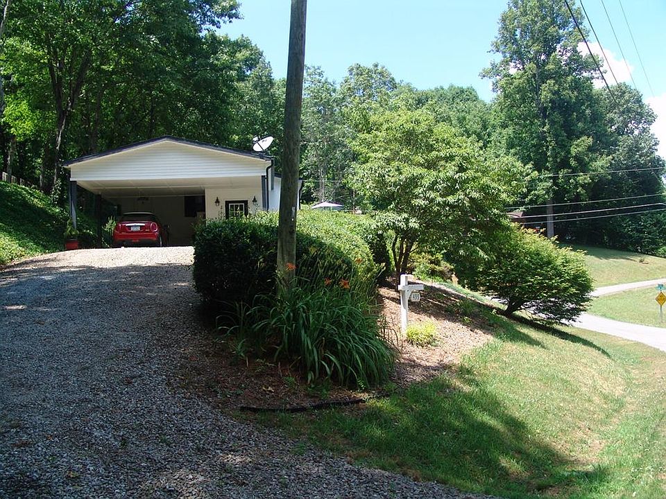 Franklin, NC...Hiland Park...Fully Furnished Split 2 BR Double-wide on permanent foundation affixed to real property. Central HVAC, Kitchen features AMANA Appliances, Slate counter tops, Skylight, Master Bath has Tile WALK-IN Shower, large walk-in closets and dressing area with vanity. Living room is spacious and features a wood burning fireplace with Slate surround and hearth. 8' X 20' Deck features distant Mountain Views. Wonderful Attached Carport with so much extra storage and an attached workshop. Very nice furniture and furnishings come with this home.