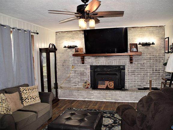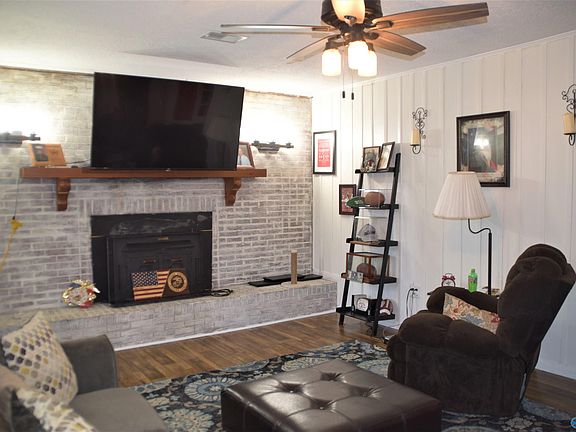 Ohatchee- Farmhouse w/ 9.73+/-ac, Barn w/2 stalls, pasture fencing on apprx 8ac; tree house; Nice brick home on level land, home feat 3BR/2BA, Kitchen with Breakfast area, Family Room, Den, Laundry room, Screen porch, deck. Spring fed pond. Garage and Carport.