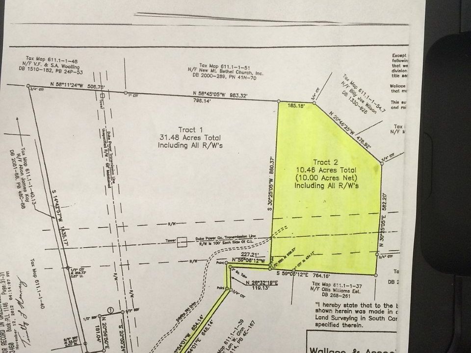 10.46 acre tract of land with 25 foot private road access off McMahan Mill Road. Property is very private and secluded. Hardwoods and pines are on the property. Duke Engery powerline does cross the property.