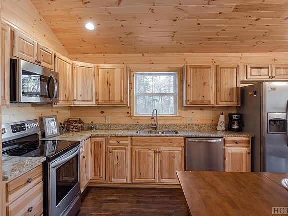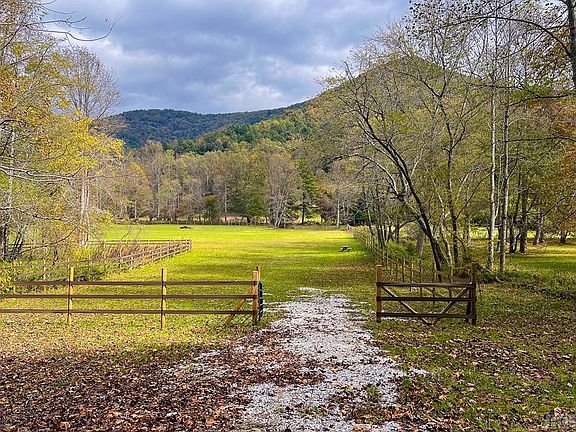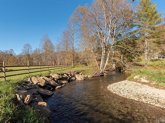 Calling all equestrians and horses as this 2021 well-constructed barndominium on almost 11 rural, mountain acres in Otto, NC awaits your arrival! Country living has many advantages, including space and rural aesthetics, as you will find with this trendy and functioning barndo, surrounded by pristine pastures, Middle Creek and long-range mountain views. You will be drawn to the one-level living and open-concept floor plan that boasts four, private-entry king en suites, each with its own cedar closet, bathroom, vaulted ceilings, and windows with serene views. The bathrooms are tastefully adorned with equestrian-themed accessories, a pedestal sink, tiltable mirrors and slate flooring. The barn-like interior features 2x6 custom wood doors, 3/4-inch-thick, hand-honed, five-foot Hickory wood flooring, and Hickory kitchen cabinets. A repurposed cedar tree from the property functions as a structural beam in the heart of the living and kitchen area, giving authentic architectural interest. No detail was overlooked, including closed-cell spray insulation and seven mini splits to ensure maximum temperature control throughout the home. The insulated and double-paned windows tilt for ease of cleaning. Interior rafters are double-secured. The kiln-dried, tongue-and-groove walls have been double coated with total wood protection (TWP) and 2x6s were used for all the wood trim work. Retreat to the private, pressure-treated, solar-lit deck, secured with 8x8 pillars, while you soak in the beauty of the pastures, the Blue Ridge Mountains, and abundant wildlife. Horses will be pampered as the six interior 12x12 oak stalls are equipped with automated waterers, hay bales, and horse mats. A tack room with a separate washer/dryer for your equine family and a caretaker room (equipped with a shower and toilet) assures the utmost usability of this well-designed barndo. Created with potential to host a BYOH (bring your own horse) bed and breakfast, investors and animal-lovers will be in awe.