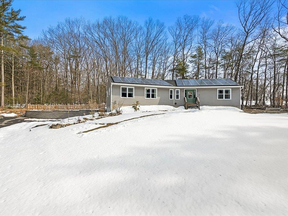 Welcome to 499 New Boston Road! Get ready to fall in love with this beautifully updated sprawling Ranch. This 3 Bedroom 2 Full Bath is just beaming with natural light perfect for your owned SOLAR PANELS. Features of the home are Large front to Back Family Room, Kitchen with freshly painted cabinets, all NEW Appliances, Wine fridge, Granite counters. Remodeled Bathroom, 1st floor Laundry; Primary Bedroom with En Suite and slider to back deck. Newly finished basement offering Den, Mudroom, Pantry and Office. Oversized 2 Car Under Garage. Newer windows and Skylights. GAF Timberline roofing system (lifetime warranty), NEW Heating System & AC, New Retaining wall.. See UPGRADE List for it all! Highly desired Bedford schools and conveniently located minutes to Riddlebrook Elementary. Showings starting at Open House times only!