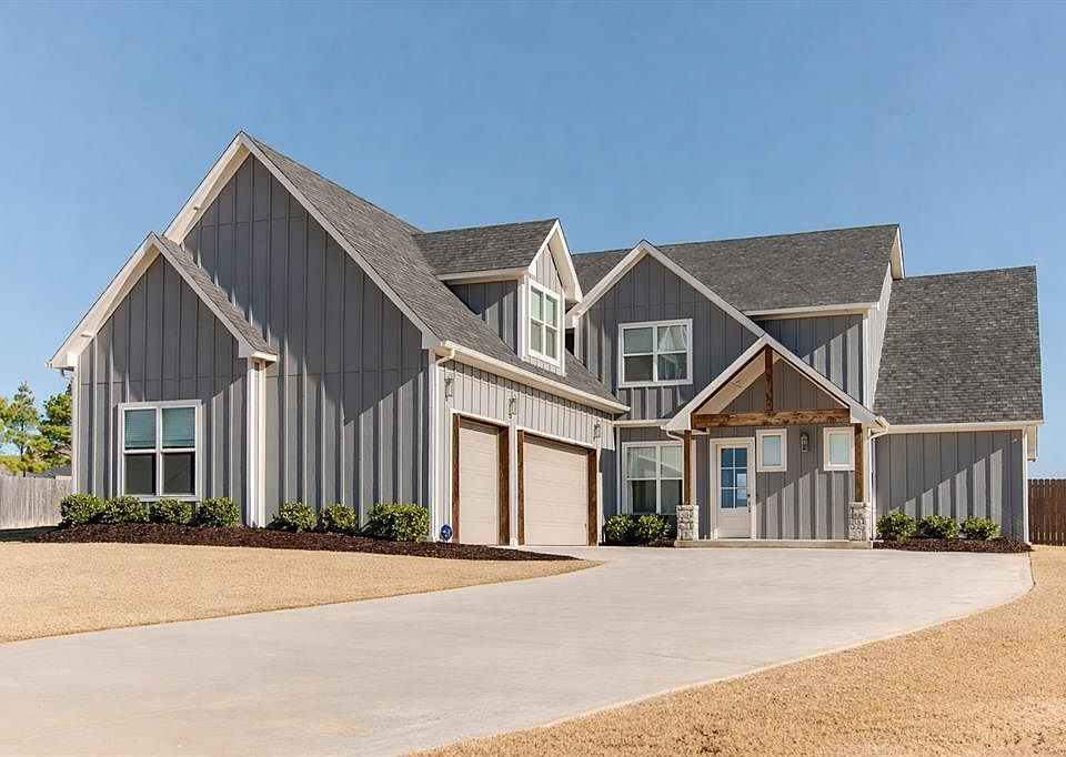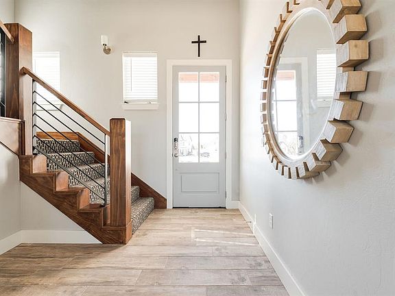 Exceptional modern farmhouse living with elevated finishes throughout. Striking curb appeal begins with a cathedral-style front porch accented by cedar beams. Inside, the entry sets the tone with elegant wood beam detailing throughout. A private office with French doors sits just off the foyer, while the main living space is filled with natural light from a wall of windows and sliding glass doors that open to a spacious covered patio. The living room features a beautiful fireplace with a charming hearth and rich wood-grain tile floors. Designed for both everyday living and entertaining, the open-concept layout flows seamlessly into the kitchen and dining area, showcasing a large center island with ample seating, commercial-grade appliances, floor-to-ceiling cabinetry, and a walk-in pantry. The owner’s retreat is thoughtfully tucked away in its own wing and offers a spa-like en suite with a freestanding tub, walk-in shower, double vanities, and direct access to an oversized walk-in closet with custom built-ins. Upstairs, you’ll find three additional bedrooms, a large bonus room that could serve as a fifth bedroom, and a full bath with double vanities. Additional highlights include a spacious three-car garage and a generous 0.76-acre cul-de-sac lot with room to grow or add a shop. Located in Edmond schools and close to shopping and amenities. Schedule your private showing today—this one is not to be missed.