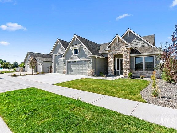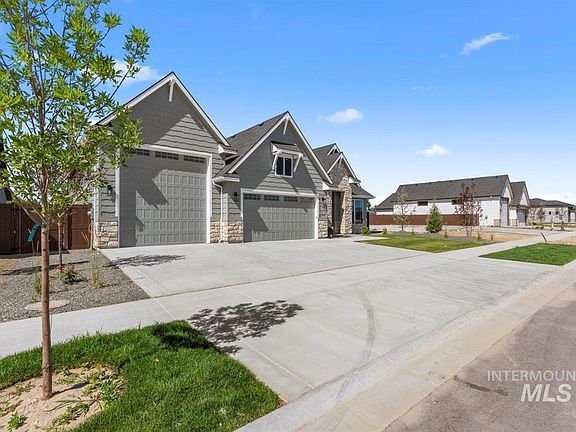 The Chantel by Executive Homes is a charming single level home featuring the high-end upgrades you’ve dreamed of! From the impressive flooring selections to SS Bosch appliances including a 6-burner range top and a drawer microwave! Beautiful tile work in all bathrooms and laundry room; a master bath to die for with a true walk-in tiled shower and double shower heads, and a massive walk-in closet connected to the laundry room! Kitchen is loaded with custom cabinets and a very spacious pantry! Soft close cabinets and drawers, Huge RV Bay with a 13 ft high door and approximately 49 ft deep. Impressive great room with vaulted ceiling, with decorative beams and expansive windows for natural light. Fully landscaped. Photo Similar