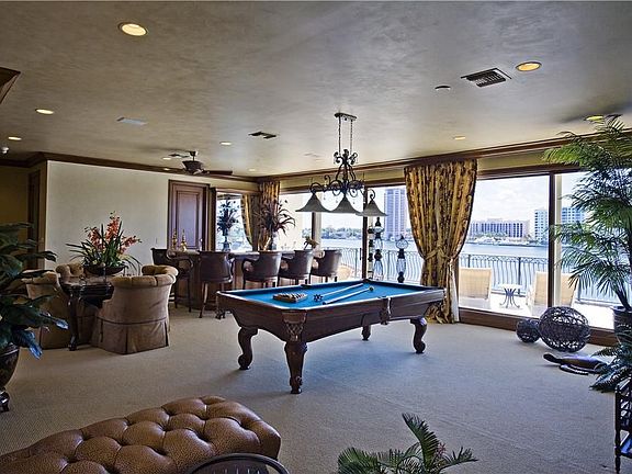 Affording unsurpassed elegance and luxury, a spectacular Tuscan-inspired estate gracing a splendid setting on prestigious Lake Boca Raton. Presiding over lavish tropical grounds on Lake Boca Raton, this magnificent newly renovated deepwater estate enjoys one of Boca Raton's most highly sought-after locations. Walled and gated, this exceptional property commands panoramic views over-looking the Intracoastal Waterway and historic Boca Raton Resort and Club directly across the lake. Unsurpassed standards of design and workmanship are shown throughout this beautifully appointed, exquisitely furnished home, comprising over 8,800 ± luxurious square feet. Guests are welcomed in a dramatic marble-floored foyer, leading to the elegant living room highlighted by a coral fireplace and two-story window wall surveying the lake. Adjoining the gourmet kitchen is the butler’s pantry with wine cellar. Six bedrooms include a luxurious master suite occupying the entire south wing upstairs. Enhancing the home’s entertaining capabilities is a third-floor family room with breath-taking vistas, opening east to a balcony viewing daybreak over the Atlantic and west to brilliant sunsets above tranquil Lake Boca Raton. This spectacular waterfront estate combines impeccable design, state-of-the-art luxury, and splendid surroundings in an offering of unparalleled distinction. Location South Ocean Boulevard, Boca Raton, Florida. Lake Boca Raton is one of Boca Raton’s most prestigious locations, adjacent to the Boca Inlet and offering direct ocean access. World-class shopping and dining are available at Mizner Park. Boca Raton is served by an private executive airport. Property Uniquely sited on Lake Boca Raton, this Tuscan-inspired deepwater estate commands panoramic views overlooking the Intracoastal and Boca Raton Resort and Club. Walled and gated, the lushly landscaped grounds afford distinctive outdoor entertaining with a resort-style pool/spa, dining pergola, and multi-slip yacht dock. Residence This magnificent newly renovated and Robb & Stuckey designer furnished estate contains over 8,800 ± square feet with 6 bedrooms, 7 full and 2 half baths, and a 3-bay garage. An elevator services all three levels. First Floor: Palatial double doors open to a magnificent foyer with elegant marble flooring, which continues throughout the main level. Dramatic floor-to-ceiling windows capture splendid lake views. Fireplaces highlight the 2-story formal living room and bookcase-lined paneled library. The formal dining room is styled with graceful columns and custom built-ins. The island kitchen offers granite counters and top-of-the-line appliances. Adjacent is a catering/butler’s pantry with wine room. Second Floor: The luxurious master suite features a lavish his and hers marble baths, wardrobes and private balcony. Four additional bedroom suites accommodate family and guests. A lounge/loft is also included. Third Floor: The spacious family/billiard/pub room opens to a balcony with spectacular views of the Intracoastal and ocean beyond.