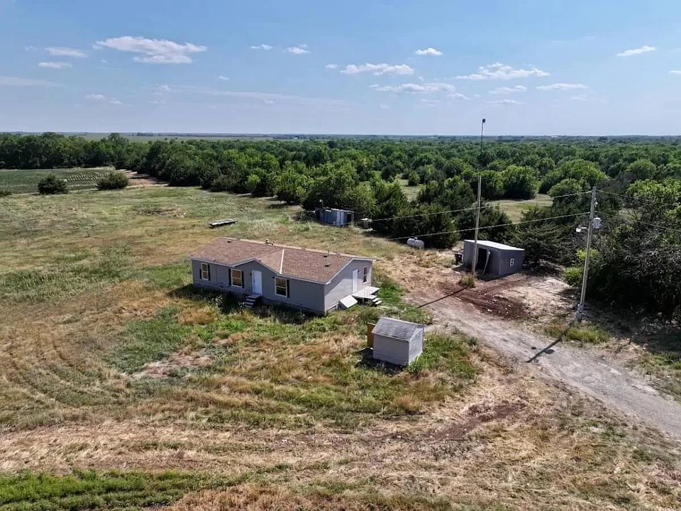 3 bedroom 2 bath double wide with 1248 square feet lot living area built in 2000 on 9.8 acres east of Douglass in Butler County, Kansas. A portion of the property is tillable farm ground currently plant to cotton! The house is on a water well, lagoon, and propane plus there is a Velocity tower in place. A good portion of the interior has been recently remodeled. There are a couple of misc. building that have some utility. With a good thick pocket of trees at both the north and south end, and a good amount of trees all along the west, this acreage offers some hunting and recreation opportunities. There is an additional 30.1 acre adjoining this property to the east that is also available!
