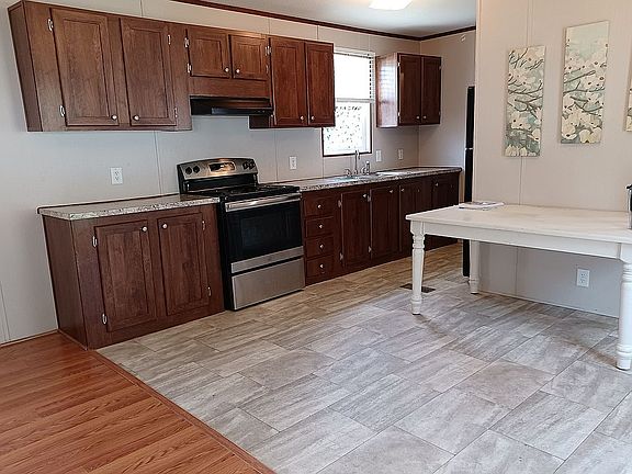 Singlewide mobile home lived in 7 yrs by retired couple. Nice and clean and in good condition, but not new. A beautiful wood-look gunstock oak floor was added for the living room, foyer, and hall! The home comes with an 8x12 foot deck at the front door, and an 8x10 foot shed. Parking for 2 vehicles.