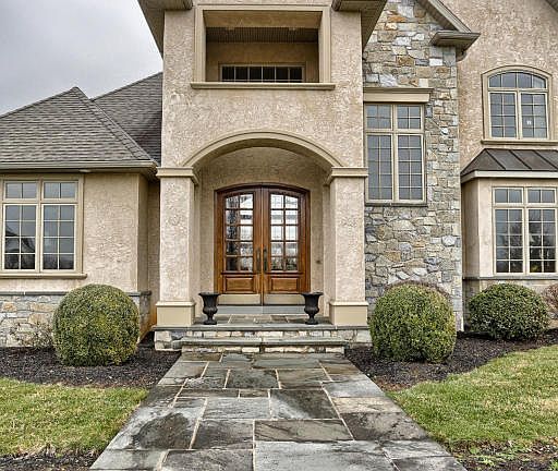 5 bedroom home in Manheim Township's Stonehenge on 1.87 acres. Eat in kitchen with island, desk, walk in pantry & wet bar. Family rm with wall of windows, gas fp & cathedral ceilings and 2nd gas fp in living rm with build in cabinets. 1st flr master suite with whirlpool tub in master bath & 2 story ceilings. Finished daylight lower level with media room, in-law suite & exercise rm. Screened in porch, rear patio & mature landscaping.