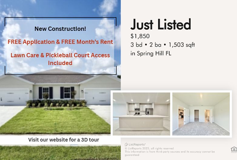 FREE APPLICATION & FREE MONTH'S RENT Beautiful 3 beds 2 baths is available for rent in Spring Hill, FL. with 10 Stars Property Management Discover your perfect Florida retreat at 499 Voltaire Drive, Spring Hill, FL 34690! This charming home offers comfort and convenience just minutes from some of the Nature Coast's best attractions. Spend weekends kayaking at Weeki Wachee Springs State Park, home of the world-famous mermaid shows, or enjoy fishing and sunset views at nearby Bayport Park and Hernando Beach. Just a short drive away, you'll find shopping and dining at The Shoppes at Spring Hill and easy access to US-19 for commuting. Whether you're exploring the nearby Gulf Coast beaches or enjoying local favorites like the Suncoast Trail and wildlife preserves, this location puts the best of Florida living at your fingertips. 3D Virtual Tour: Click Here to Explore Features: - Application fee will be credited back on the 1st month of rent if approved - Brand new construction - Tile flooring for durability, easy to maintain finish - Carpeted bedrooms for added warmth underfoot - Sleek stainless steel appliances for everyday convenience - Kitchen island for casual dining and added prep space - White kitchen cabinetry for a clean, timeless look - Convenient dishwasher for easy cleanup after meals - Refreshing ceiling fans for added comfort and airflow - Window coverings for privacy and light control - Laundry room equipped with washer and dryer for convenience - Double sink vanity for added convenience during busy mornings - Bathtub and walk in shower for versatile bathing options - Covered patio offers a shaded outdoor space perfect for lounging or entertaining - Direct access to the backyard for seamless indoor-outdoor living - 2 car garage for secure parking and added storage - Pickleball court access for leisure and entertaining - Lawn care is included - First month rent and security deposit required Pets are allowed. No more than 1 pets per property. Weight limit of 25lbs per pet. No aggressive breeds. Applicants must complete a free pet application and have animal approved with vaccination record. The monthly pet fee will be determined by your pet screening score. Does not apply to medically/emotional support prescribed and/or service animals. Every applicant 18 years of age or older is required to complete a separate application. Each application is a $65 non refundable fee. A credit and background check will be conducted for all applicants, and management approval is required prior to signing the lease. All residents are automatically enrolled in the 10 Stars Resident Benefits Package at a cost of $7.99 per month. This program was developed to enhance the overall rental experience by providing added convenience, protection, and value throughout the lease term. Enrollment is required and cannot be waived. The package may only be initiated at the time of lease signing or renewal and includes a range of benefits designed to promote a more efficient, flexible, and secure tenancy. Renter's insurance required prior to move-in. At 10 Stars, we offer multiple services to make your stay with us easy and comfortable. We have a same-day application approval and a quick move-in for no additional cost. Our team is professionally trained and will be able to assist with any leasing, billing, or maintenance issues our tenants have. We also offer an emergency line available 24/7 for any urgent cases. Tenants have access to an online portal where they can make rent payments, communicate with our team and get updates on their payments and maintenance requests at all times.