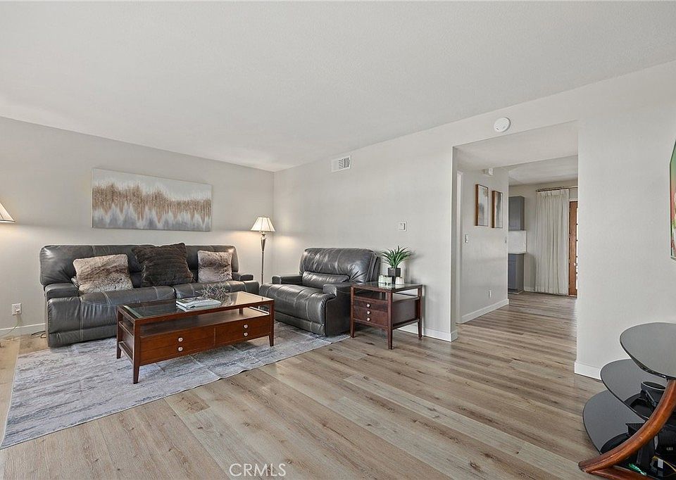 Updated home in desirable North Buena Park located in the Los Coyotes Country Club Area. This 3 bedroom and 2 bath home located in the Highland Greens Community is freshly painted with new carpet, new luxury vinyl flooring and baseboards. As you step inside, the spacious living room is bright and airy with a sliding door that opens up to the private patio. The kitchen has also been updated with beautiful cabinets and gorgeous quartz counters. Off the kitchen and dining room is another set of patio door that opens up to the rear private balcony. In addition to the ceiling fans in each bedroom and dining room, there are newly installed recess lights. Easily access the oversized 2 car garage from the rear balcony. Community amenities include 5 pool, bbq, clubhouse and playground. Great location that is close to all the local shops and restaurants. Located in the highly acclaimed Sunny Hills High School boundary.