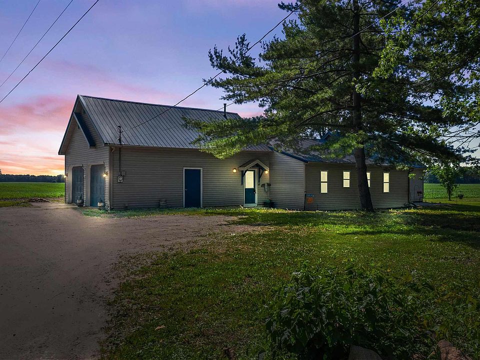 Country home, updates throughout. wood burning stove, laminant flooring, cathedral ceilings. Large dining area with new sliders to a deck overlooking the spacious yard. The kitchen includes _____ stainless steel range and refrigerator. Laundry. Master. Dishwasher. Three bedrooms and a spacious bathroom complete this ranch. There is a breezeway between the house and attached two car garage. The pole barn has 1/2 cememt floor and 1/2 dirt. Newer electrical and plumbing. Newer furnace and A/C.