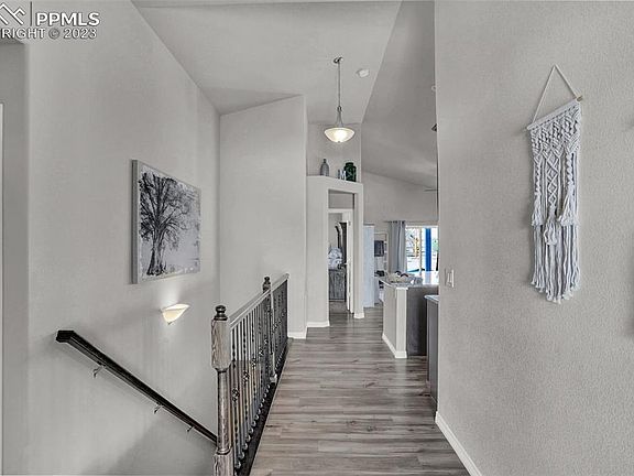 Welcome home! This absolutely stunning 5 bedroom, 3 bathroom ranch is located in the desirable Bradley Ranch Community close to shopping, restaurants, parks, schools and all the best of Colorado Springs! It is the perfect family home with a fenced backyard, a living room and family room! Inside, you will find an open and bright floor plan with luxury vinyl wood floors in a spacious living room with a large picture windows and convenient coat closet. The kitchen features plenty of upgrades including granite counters, large island, breakfast bar, gas range, stainless steel appliances and an abundance of windows for great natural light and vaulted ceiling for an open feel! Get cozy in the spacious living room, a focal point for all. Walk-out from the living room to the covered back patio perfect for entertaining. Also on the main level is the master bedroom with an updated attached full bathroom with separate lavatory, shower & tub! The double sink vanity will be perfect for getting ready each morning, adjacent to the walk-in closet! Main floor also has 2 additional bedrooms & laundry space. Going down to the basement, there is a spacious second family room, perfect for pool tables or workout equipment, 2 additional bedrooms and an updated full bathroom. You will love being so close to where you can picnic, bike, hike and see incredible views. All the best of mountain living in the city! You do not want to miss seeing this great find in Colorado Springs!