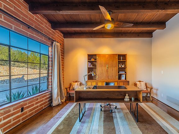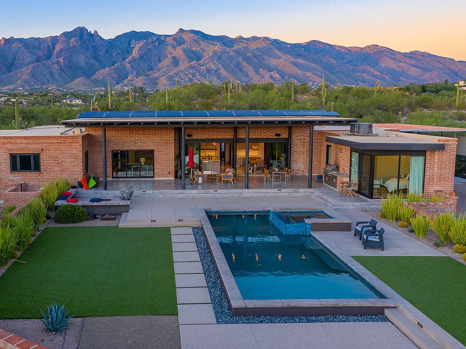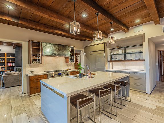 Come see this one-of-a-kind home at the top of Camino Antonio. The timeless texture of Sasabe burnt adobe, the clean lines of cold-rolled steel, and the presence of Douglas Fir beams are magic. The gorgeous Mick De Giulio Kitchen is a thing to behold; with SieMatic cabinetry, Jenn-Air & Sub-Zero appliances, and Taj Mahal Quartzite countertops. Enjoy indoor/outdoor living with stacking glass doors from the kitchen and family room to the oversized covered patio. Plus you get all the views -- City lights, A Mountain, distant mountains, sunsets and the Catalinas -- from your private 2.27 acres, adjacent to properties on larger lots. 'White Oak' marble tile flooring, wood and carpet in the right places. High ceilings, solid doors throughout. All the bathrooms are gorgeous, too. Tons of storage