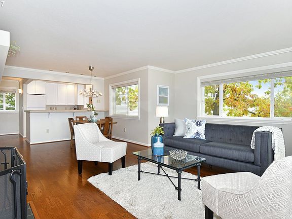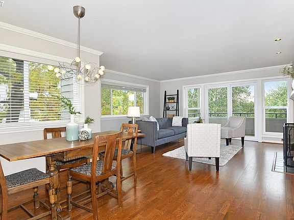Beautiful end unit with peek-a-boo river view in Johns Landing! Tons of natural light, great floor plan with beautiful hardwoods and wood burning fireplace. Newly redone deck and interior paint. Custom Murphy bed with build in cabinets in 2nd bedroom. Crown molding and custom wood cabinets. Healthy HOA and 2 parking spaces!