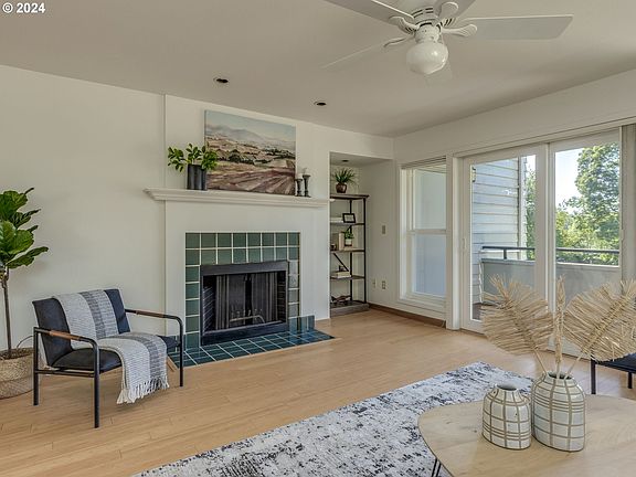 Stunning end unit | 2 bedroom 2 bathroom 1058 sq ft. condo nestled on the South Portland riverfront. This home offers side windows, views of the Willamette River, park and immediate access to the scenic Willamette Greenway walking path. You will be greeted by an abundance of natural light, fresh paint, bamboo-floored living and dining areas, complemented by a cozy fireplace and a slider leading to a covered deck. The kitchen boasts maple cabinet storage for cooking enthusiasts, a wine rack along with all essential appliances including a garbage disposal, dishwasher and Jenn-Air downdraft range. Both bedrooms are equipped with closet organizers and ceiling fans. The primary bedroom features ensuite, double closets and a mini split for climate control and comfort. 1 deeded covered parking spot. Nearby parks, transportation, shopping, and restaurants. Easy freeway access further enhances the accessibility of this desirable neighborhood. Don't miss the opportunity to make this exceptional condo your new home. Two Parking Spaces- Parking #12 openParking I-carport.