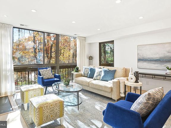 Home for the holidays! Welcome to this stunningly renovated, move-in ready 2-bedroom condo located in the highly sought-after Sumner Village community. Set amid lush, wooded acreage, this upper-floor residence (4th out of 5 floors) FACES THE WOODS, NOT THE PARKING LOT, offering beautiful wooded views from every room. The carefully designed open floor plan features wide-plank hardwood floors and a spacious living room with a wall of windows that fills the space with natural light. Plus, THE FLOORS HAVE BEEN LEVELED TO REMOVE ALL STEPS, creating a seamless flow throughout! The beautifully renovated kitchen offers ample, all-custom white cabinetry, high-end countertops and large breakfast bar with a waterfall-edge, a pantry, high-end cooktop, and stainless steel appliances. A WOOD BURNING FIREPLACE in the living room offers comfort and coziness as you enjoy your wooded, high-floor views! Off the living room, and also accessible from the second bedroom, a PRIVATE BALCONY overlooks the serene wooded area, creating the perfect spot to relax or entertain. The condo also includes a SEPARATE DINING AREA and an IN-UNIT WASHER AND DRYER for added convenience. The spacious primary suite features a custom closet system in the walk-in, two built-in cabinetry units for exceptional storage and style, and a spa-like full EN-SUITE BATHROOM with walk-in shower, designer tile, custom vanity, and elegant fixtures. The additional bedroom provides a generous space for guests or a home office and includes balcony access and a large closet. A full hallway bath serves the second bedroom and guests, and is likewise complete with walk-in shower, designer tile, custom vanity, and elegant fixtures. This unit comes with one storage cage, and also a SEPARATELY DEEDED LARGE STORAGE ROOM within the building is available for $35,000 more. The property has unassigned parking spaces throughout, and parking is never a problem. Two ELECTRIC CAR CHARGING SPACES are also available for your use! This unit features its own fully UPGRADED, INDEPENDENTLY CONTROLLED HVAC system—an uncommon and highly desirable perk in condo living. Unlike many condos with building-wide seasonal heating and cooling changeovers, this unit offers year-round flexibility, comfort, and efficiency. Enjoy a redone HVAC system that provides modern performance, consistent climate control, and the freedom to adjust your home’s temperature on your schedule. Sumner Village offers an exceptional lifestyle just minutes from D.C., the Crescent Trail, and nearby shopping. It is an amenity-rich and Certified Wildlife Community set on 27 acres of beautifully landscaped and carefully maintained grounds filled with trees and flowers. Residents enjoy a 24-hour guarded entrance, a spectacular OUTDOOR SWIMMING POOL, tennis courts, pickleball courts, clubhouse with fitness and party rooms, sauna, library/card room, scenic walking and biking trails, and direct access to the Capital Crescent Trail. Sumner Village also hosts a whole calendar of fun and community-building neighborhood social events, activities, and food-trucks!