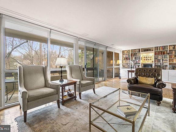 Experience luxury living in this spacious 2-bedroom, 2-bathroom condo located in the sought-after Sumner Village neighborhood of Bethesda. This unit features an open floor plan with high ceilings, and large windows that let in plenty of natural light. Take in the custom details including floor to wall built-in shelving, a recently upgraded woodburning fireplace surrounded by a neutral marble façade with white mantel, complete with a sliding glass door that opens to the first of 2 covered balconies. The living space is spacious and functional with space for a home office that flows around to a dining area with additional built-in wood and glass cabinets with dedicated serving space. The spacious kitchen is equipped with recently replaced appliances, granite countertops, a mobile island and under cabinet lighting. The large primary bedroom has a dressing area with mirrored closets and en-suite bathroom with a large vanity. The second bedroom is also spacious and can be used as an office or a guest room and connects to the primary bedroom with the second covered balcony. Other features include in-unit laundry, an additional large storage room and 2 covered parking spaces in the garage. The building amenities include a guard gate with 24- hour attendance, a pool, tennis courts, pickleball courts, fitness center, a community room and much more. This condo is located within walking distance to the Shops at Sumner Place, Starbucks, Safeway, restaurants, beautifully landscaped green spaces, and walking paths.