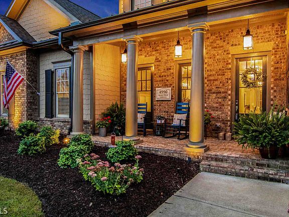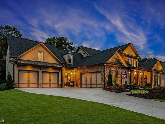 Jaw dropping gorgeous w too many upscale features & custom finishes to list! Larger lot, custom-built 4-sided brick ranch plan with 4+ garage parking! This stunning ranch plan features master PLUS 2 bedrooms on main, & huge 4th guest bdrm/full bath upstairs. On opposite end of house is an upstairs finished flex room with dedicated private staircase for man (or woman)-cave, private home office, craft, or teen suite with 1/2 bath. Hardwoods throughout main, granite in all baths, & GORGEOUS quartz countertops, stainless steel appliances, double ovens,beautifully custom painted cabinets, tons of kitchen cabinet storage, & huge walk-in pantry (& butlers pantry) in chefs kitchen. Exposed beams, stacked stone fireplace, custom draperies in great room which overlooks screened patio and private wooded backyard. Outdoor porch fireplace is perfect for those cold evenings!!! Owners retreat has a dramatic trey ceiling, oversized space with natural light, separate his/her walk-in closets, zero-entry tiled cave shower, and separate his/hers custom painted cabinets & vanities. The exterior of this home (and the entire neighborhood) is beautifully lit at night with night vision accent exterior lighting. Roof, mechanicals, & tankless hot water heater just 3 years old. 1-year home warranty provided at no additional cost to buyer. Residents enjoy the clubhouse "The Lodge" which offers a community pool and views of Settendown Creek. Churchill Crossing is only minutes from top-rated schools, upscale shopping at the Collection at Forsyth, and close to outdoor recreation activities at many nearby parks. This home is a 10++.