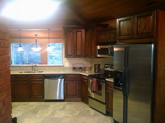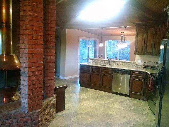 If you are looking for a peaceful and quiet home or weekend getaway, then you will love this home! The home sits on 3.42 acres with plenty of outdoor space. The inside of the home is a mix of rustic fixtures, travertine bathrooms, and cabin living. The roof was replaced in 2015, and a 2500 gallon water tank was also installed in 2015 next to your private well. There is a 2 car detached garage with a sauna. There is a beautiful copper fireplace with brick surround in the center of the living room and another brick fireplace in the Master Bedroom to keep you cozy on those cold nights. Each bathroom is equipped with baseboard heaters, and each bedroom has individually controlled electric heaters. Enjoy the beautiful view of Granite Mountain, and the convenience of being only 24 minutes from Watson Lake and downtown Prescott.