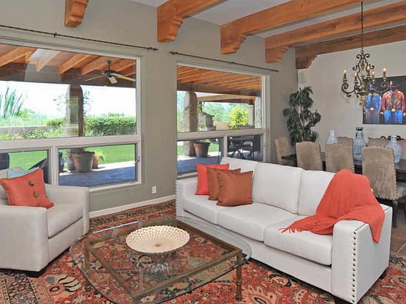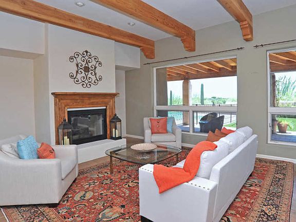 Gorgeous Territorial home w/stunning city/mountain views. Split floorplan, 3 bay garage with large storage capacity. Formal living/dining with fireplace, gourmet kitchen w/granite counters, island and breakfast area, Subzero fridge, 2 ovens, 6 burner gas range, opens to large family room with fireplace. Lux master suite w/ 2 walk in closets, xtra washer and dryer room off master. Step outside and enjoy the new outdoor covered patio with fireplace and kitchen with pizza oven. Pool, spa, fireplace; wonderful city views. Neighborhood Description 68 homes in a boutique gated community located just north of river rd. Great location for easy access to town or foothills.