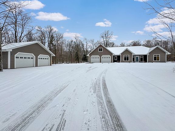 Tucked away on a private 5 acre wooded lot just south of Bemidji, this stunning 3 bedroom, 3 bath home offers the perfect blend of comfort and style. Step inside to find an inviting open floor plan highlighted by high ceilings that create a bright and airy atmosphere. The main floor living design ensures ease and accessibility, with thoughtfully planned spaces for both relaxation and functionality. The heart of the home is the spacious kitchen, complete with ample cabinetry, a convenient pantry, new appliances and seamless flow to the formal dining room—which could also be utilized as an office. The master suite is a retreat of its own, featuring a generous walk-in closet and a private en-suite bathroom. A bonus room provides flexibility for a playroom, workout area, or media space, while the large laundry/mudroom offers practical storage and organization solutions. Includes a finished, heated attached garage, as well as a 28x28 detached garage that’s fully insulated and heated—perfect for a workshop or additional storage. Outside, the 5 acre lot has trails that wind through the wooded property or gather around one of the two fire pits for cozy evenings under the stars. With ample space for outdoor activities and stunning natural surroundings, this property truly offers something for everyone.