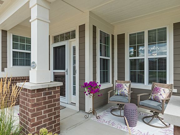 A whole lotta golf and very little work! If this sounds attractive to you, look no further than this pristine 2bd/2ba villa backing up to the 18th tee of Pebble Brook Golf Course! This spacious ranch style villa is 4 years young & teeming w/ modern updates galore! Enjoy 9' ceilings, crown molding LVP floors throughout. Gourmet kitchen features 42'' cabinets, large center island w/ farm sink, quartz countertops, tile backsplash, huge pantry & ss appliances. Secluded Owner's Suite boasts tray ceiling, comfort height dual vanities, walk-in shower, huge walk-in closet with custom organizers & clever laundry access. Dedicated office space along w/ peaceful flexroom add creativity to your living space. Covered back porch overlooks tree-lined private backyard. Scratch your golf itch by hopping on the golf cart trail nestled next to your backyard! Deep 2 car garage & irrigation system, next to impossible to find at this price. Leave your mower & snowblower; rest easy & savor this low maintenance lifestyle. Book showing, a tee time and move right in!